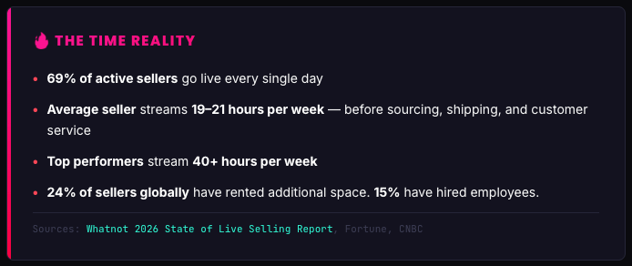 Whatnot just posted $8B+ in GMV for 2025 — more than doubling year-over-year. Over 500 sellers crossed $1M in annualized revenue. One operation does $1M per week. But the headline numbers hide a more complicated story about fees, time, and what it really costs to build a live selling business.